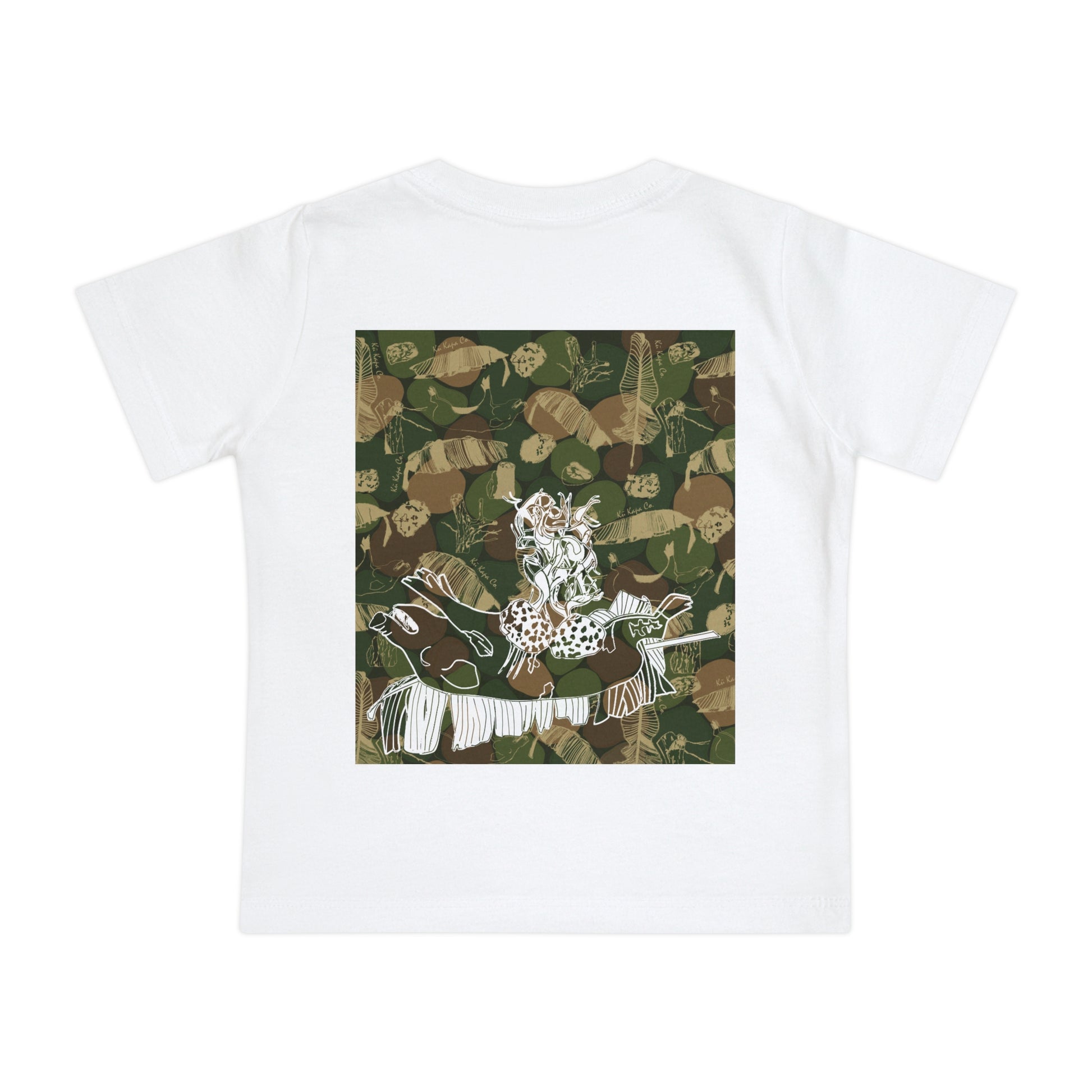 Kids playful kalua pig design with imu camo background. This adorable keiki T-Shirt is perfect for your little one's wardrobe. The cute design adds a fun and festive touch, making it ideal for Hawaiian-themed parties, family gatherings, or everyday wear. A comfortable fit and durable fabric ensure your child stays stylish and cozy.